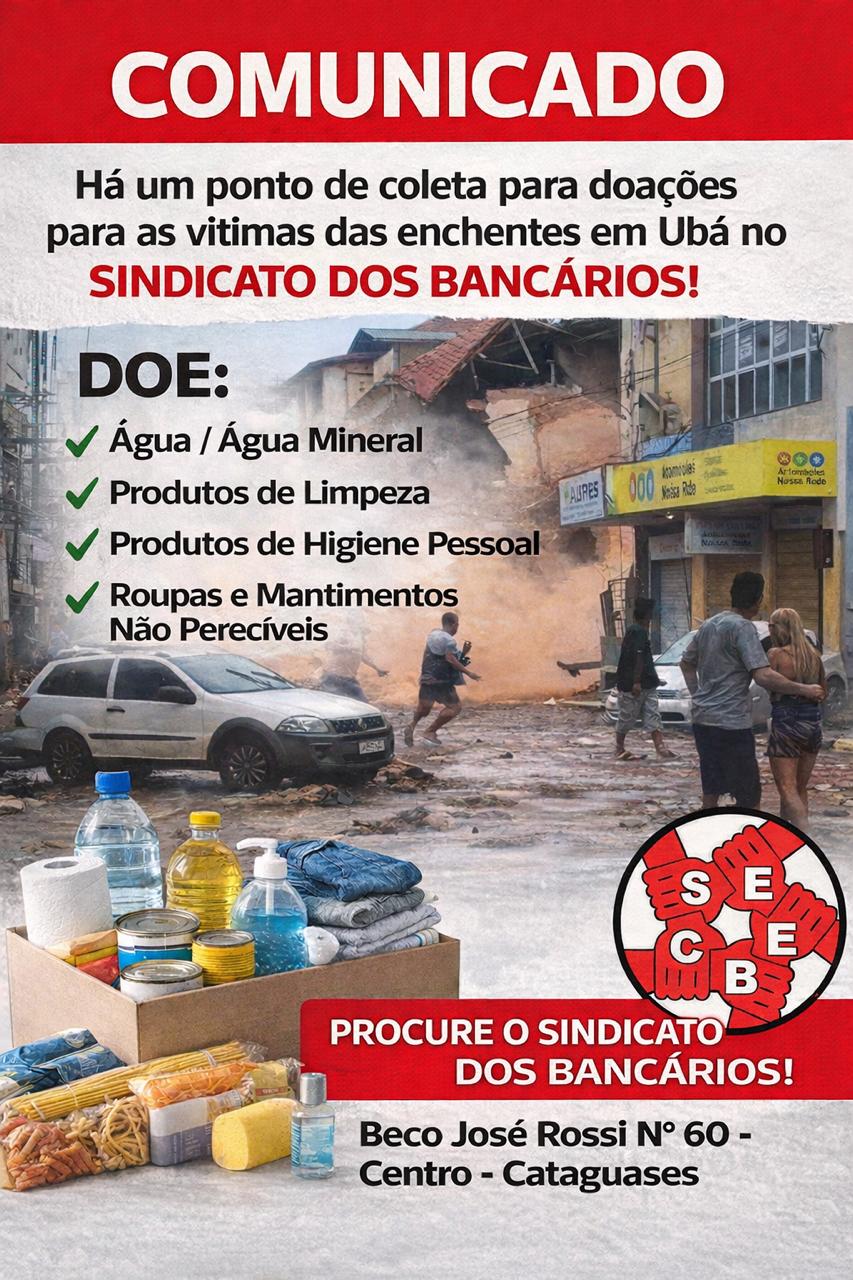 Diante da tragédia provocada pelas fortes chuvas que atingiram Minas Gerais no início desta semana, o coletivo Sindicato Solidário, da Contraf-CUT, está organizando uma campanha de arrecadação para apoiar as famílias afetadas, especialmente nos municípios de Juiz de Fora e Ubá.