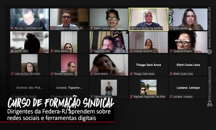 O curso de Formação da Confederação Nacional dos Trabalhadores do Ramos Financeiro (Contraf-CUT) teve mais uma etapa na noite de terça-feira (01). Dezenas de dirigentes da Federação das Trabalhadoras e dos Trabalhadores do Ramo Financeiro do Estado do Rio de Janeiro (Federa-RJ) assistiram a uma aula sobre redes sociais e demais ferramentas de luta, de forma online. “O nosso programa de formação tem atividades presenciais e digitais, em busca de abranger a sistematização do conhecimento nas diversas estratégias e ferramentas de luta de importância para a classe trabalhadora”, afirmou Rafael Zanon, secretário de Formação da Contraf-CUT.