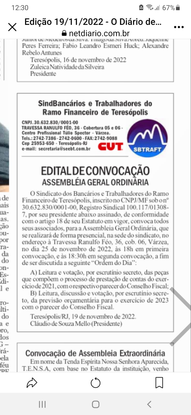 O Sindicato dos Bancários e Trabalhadores do Ramo Financeiro de Teresópolis,